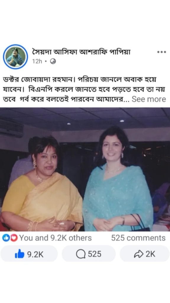 সাবেক এমপি সৈয়দা আসিফা আশরাফি পাপিয়া এই তথ্যসমৃদ্ধ পরিচয়টি “কার্টেসি” দিয়ে সামাজিক মাধ্যমে প্রকাশ করেন।