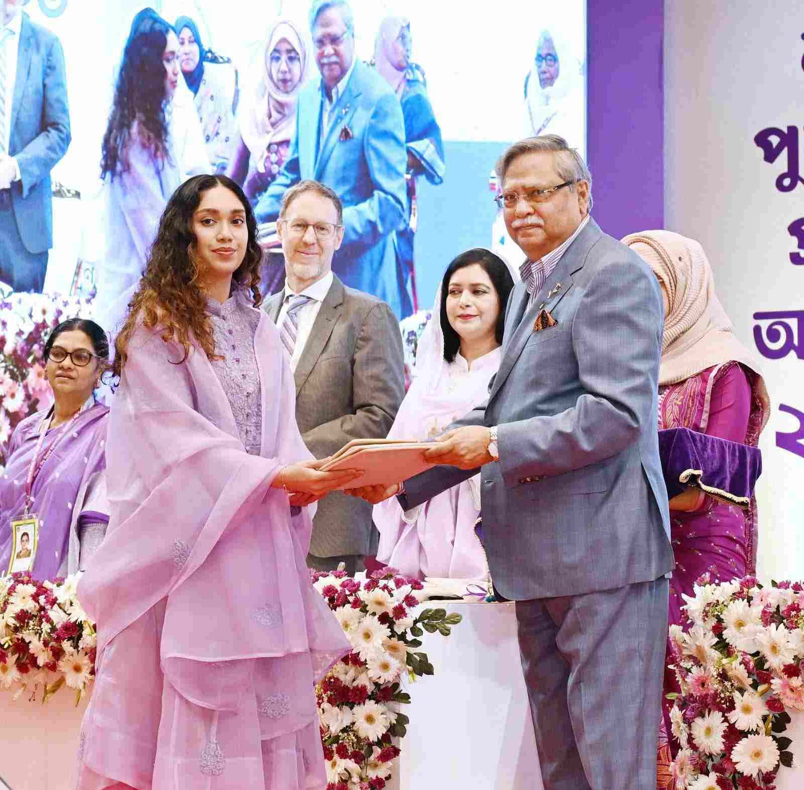 নারী দিবসে রাষ্ট্রপতির হাত থেকে নাতনি জাইমা রহমানের পুরস্কার গ্রহণ