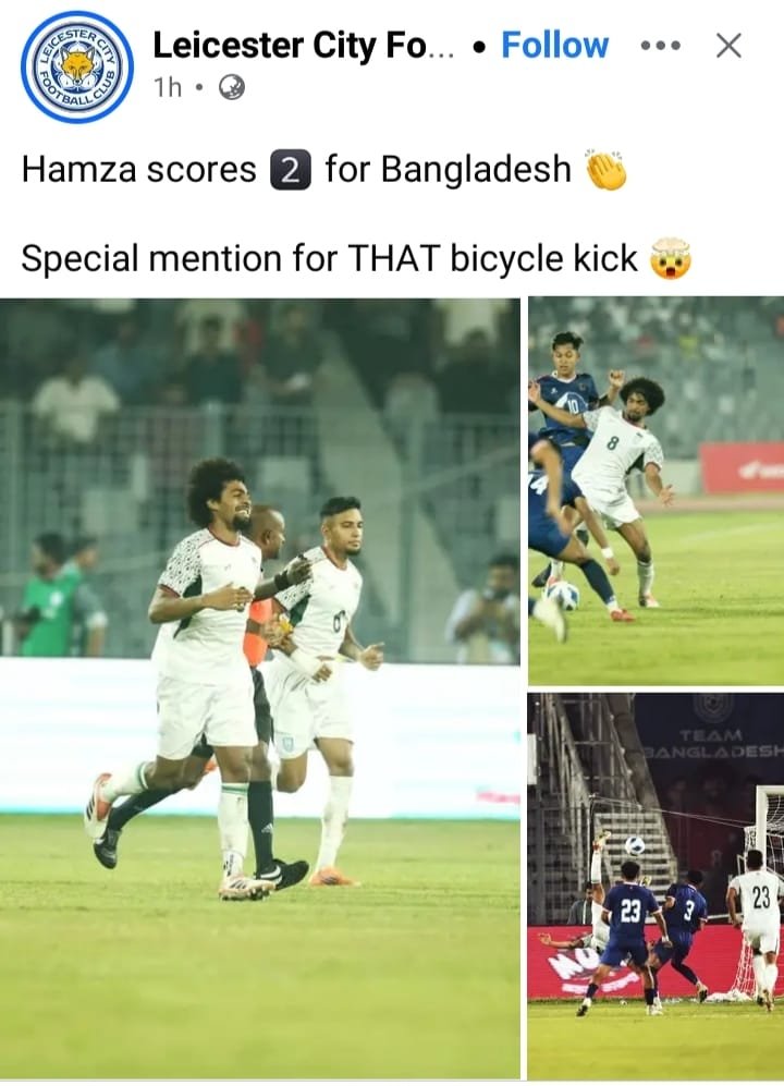 এছাড়া প্রিমিয়ার লিগের ক্লাব লেস্টার সিটিও তাদের অফিসিয়াল পেজে হামজার পারফরম্যান্স তুলে ধরেছে, যা বাংলাদেশের ফুটবলপ্রেমীদের আরও উচ্ছ্বসিত করেছে।