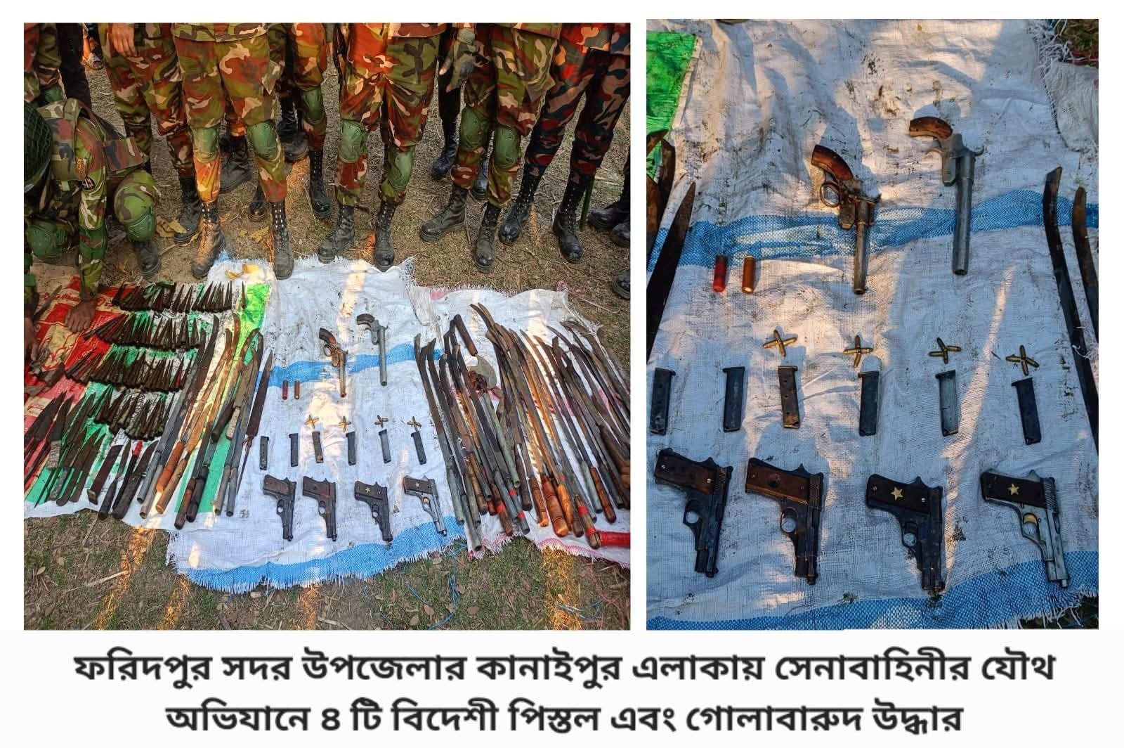 গোপন তথ্যের ভিত্তিতে পুকুর থেকে উদ্ধার হলো ৪টি পিস্তলসহ বিপুল অস্ত্র