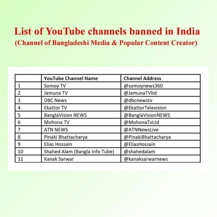 বাংলাদেশের যে সব ইউটিউব চ্যানেল ভারতে বন্ধ করা হয়েছ।