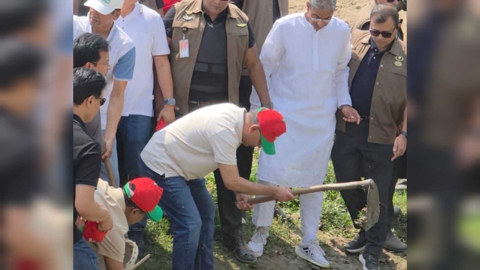 দিনাজপুরের কাহারোলে কোদাল দিয়ে মাটি কেটে সূচনা, রোপণ করলেন বৃক্ষ