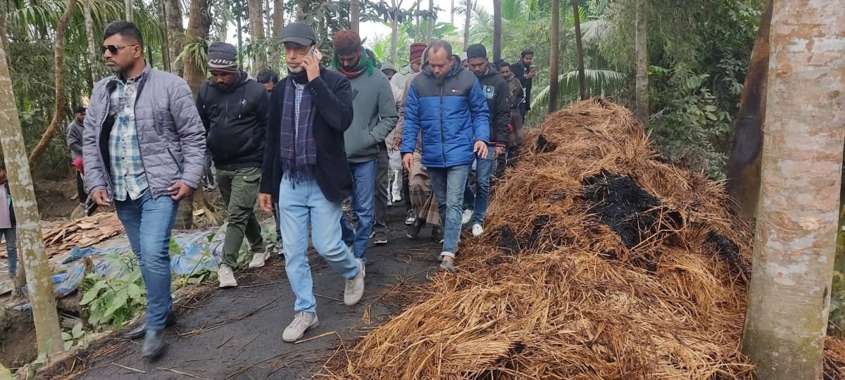 ক্ষতিগ্রস্ত বাড়ি পরিদর্শন, দোষীদের শাস্তির দাবিতে কঠোর অ বস্থান নেতৃবৃন্দের