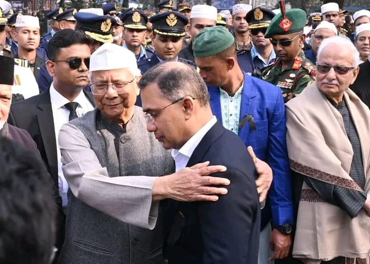 রাষ্ট্রীয় শোকের আবহে জানাজায় উপস্থিত হয়ে শোকাহত পরিবারের পাশে দাঁড়ালেন অন্তর্বর্তী সরকারের প্রধান