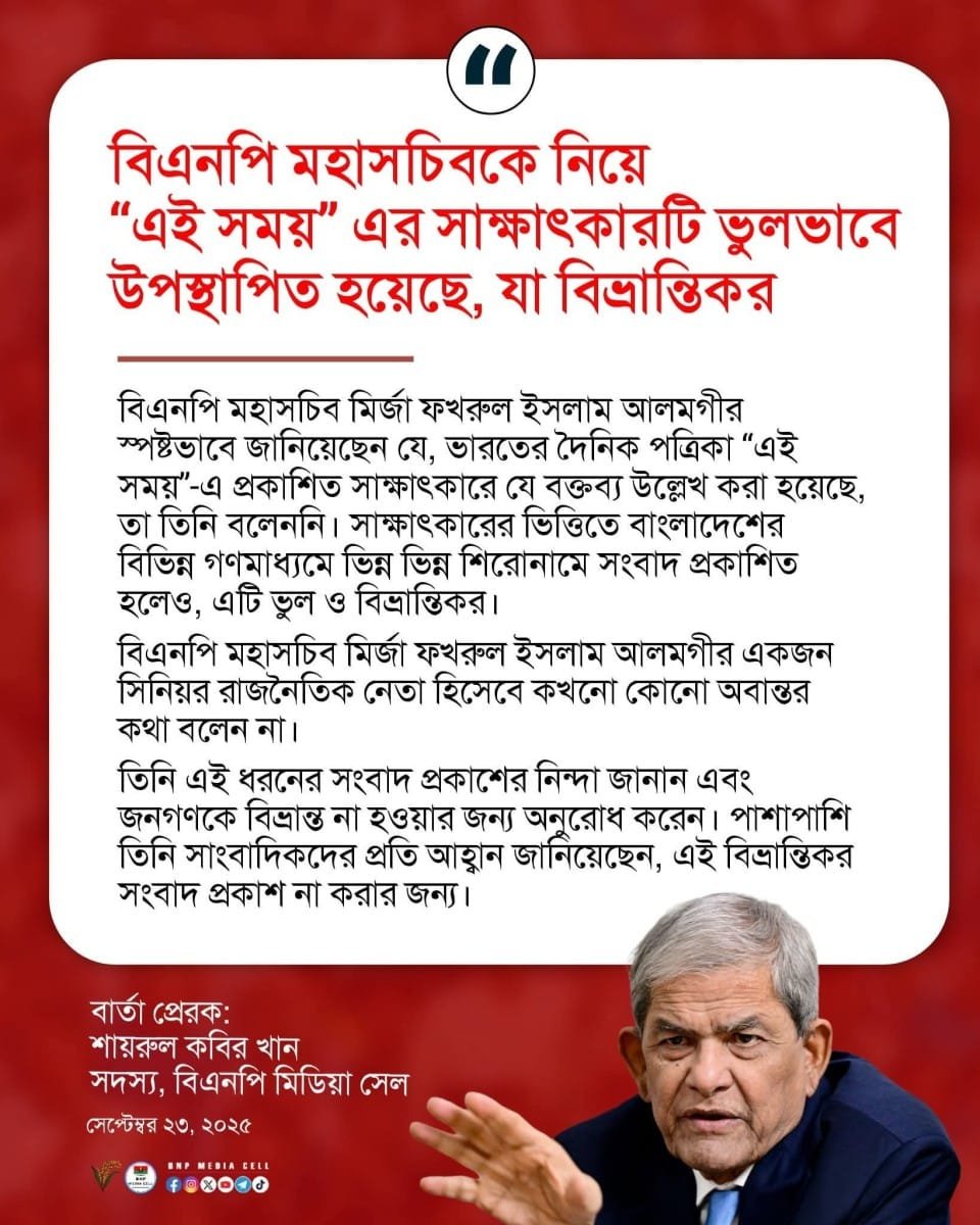 যুক্তরাষ্ট্রের নিউইয়র্কে অন্তর্বর্তী সরকারের প্রধান উপদেষ্টা ড. মুহাম্মদ ইউনূসের সফরসঙ্গী বিএনপির মহাসচিব মির্জা ফখরুল ইসলাম আলমগীর, গণঅধিকার পরিষদের সদস্য সচিব…