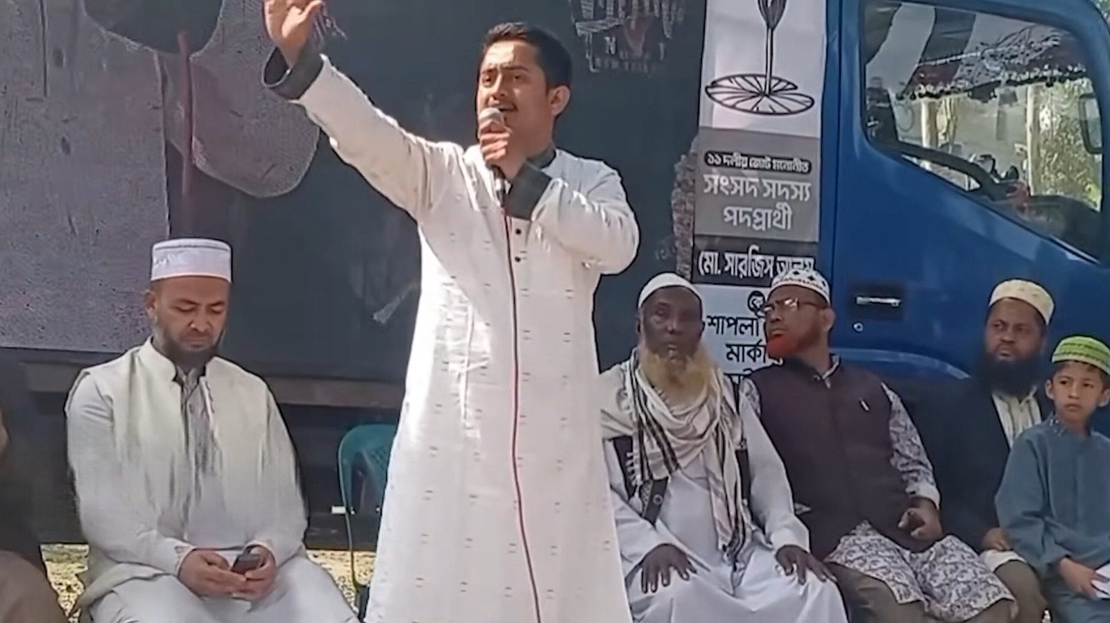 চাঁদাবাজি ও জমি দখলের অভিযোগ তুলে শাপলা প্রতীকে ভোটের আহ্বান সারজিস আলমের