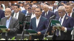 জাতীয় সংসদ ভবনে শপথবাক্য পাঠ করান সিইসি এ এম এম নাসির উদ্দিন