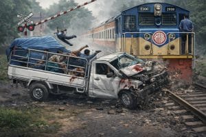 নিহত ৩, আহত ৫; রেলক্রসিংয়ে দুর্ঘটনা