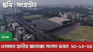 দুপুর ২টা ৩০ মি: সংসদ ভবনের দক্ষিণ প্লাজায় রাষ্ট্রীয় মর্যাদায় জানাজা শুরু হয়েছে এবং চলছে.. ওসমান হাদীর বড় ভাই জানাজার নামাজের ইমামের দায়িত্ব পালন করছেন