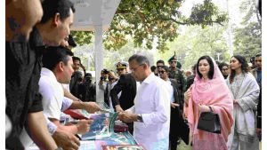 বাংলা একাডেমি প্রাঙ্গণে প্রধানমন্ত্রী ও পরিবারসহ আমন্ত্রিত অতিথিরা ফিতা কেটে মেলার দ্বার উন্মুক্ত করেন